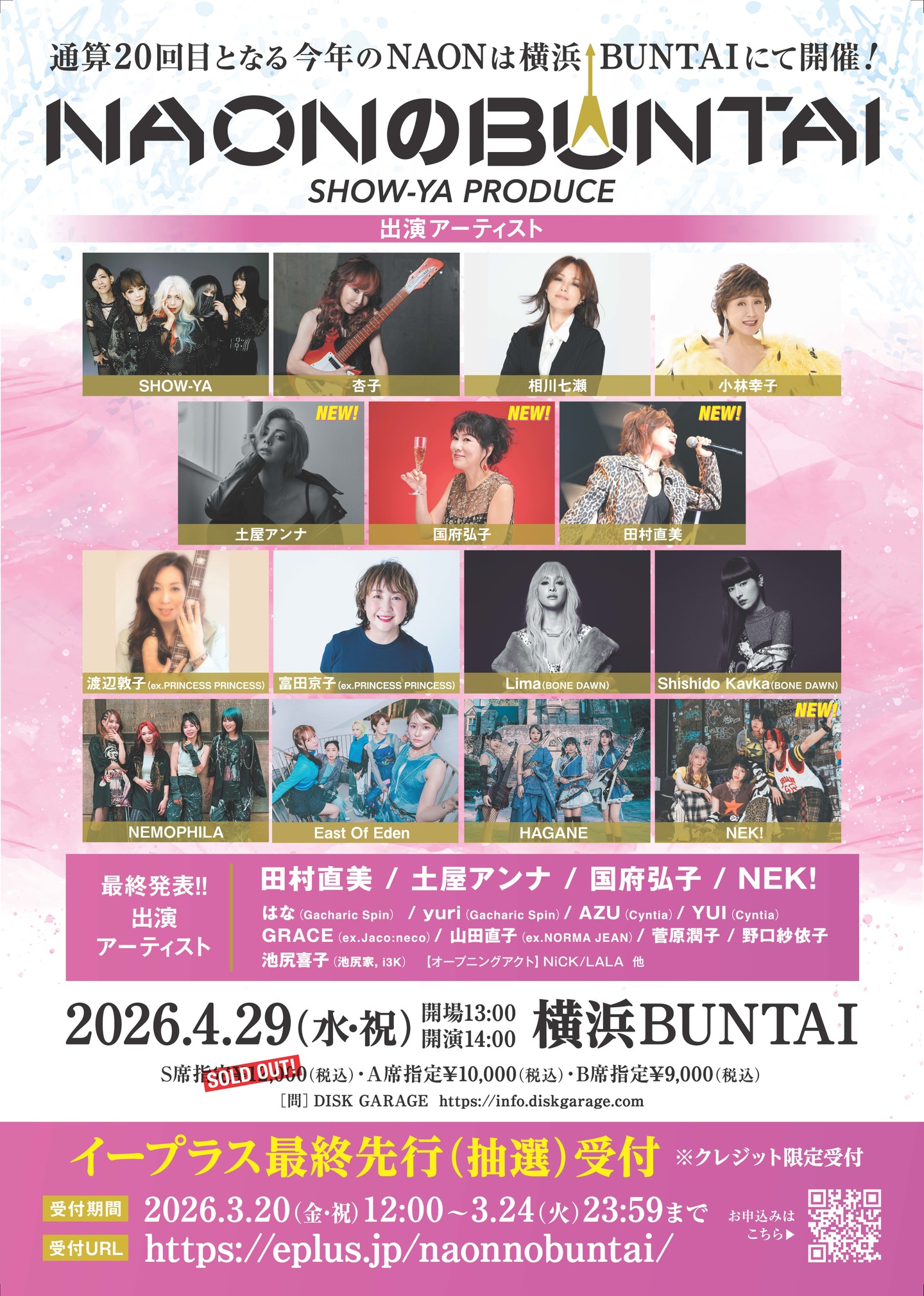 4/29(水・祝)「NAONのBUNTAI 2026」はな、yuri出演決定!3/20(金)12:00〜イープラスにて最終先行抽選受付開始!(2026.03.20更新)