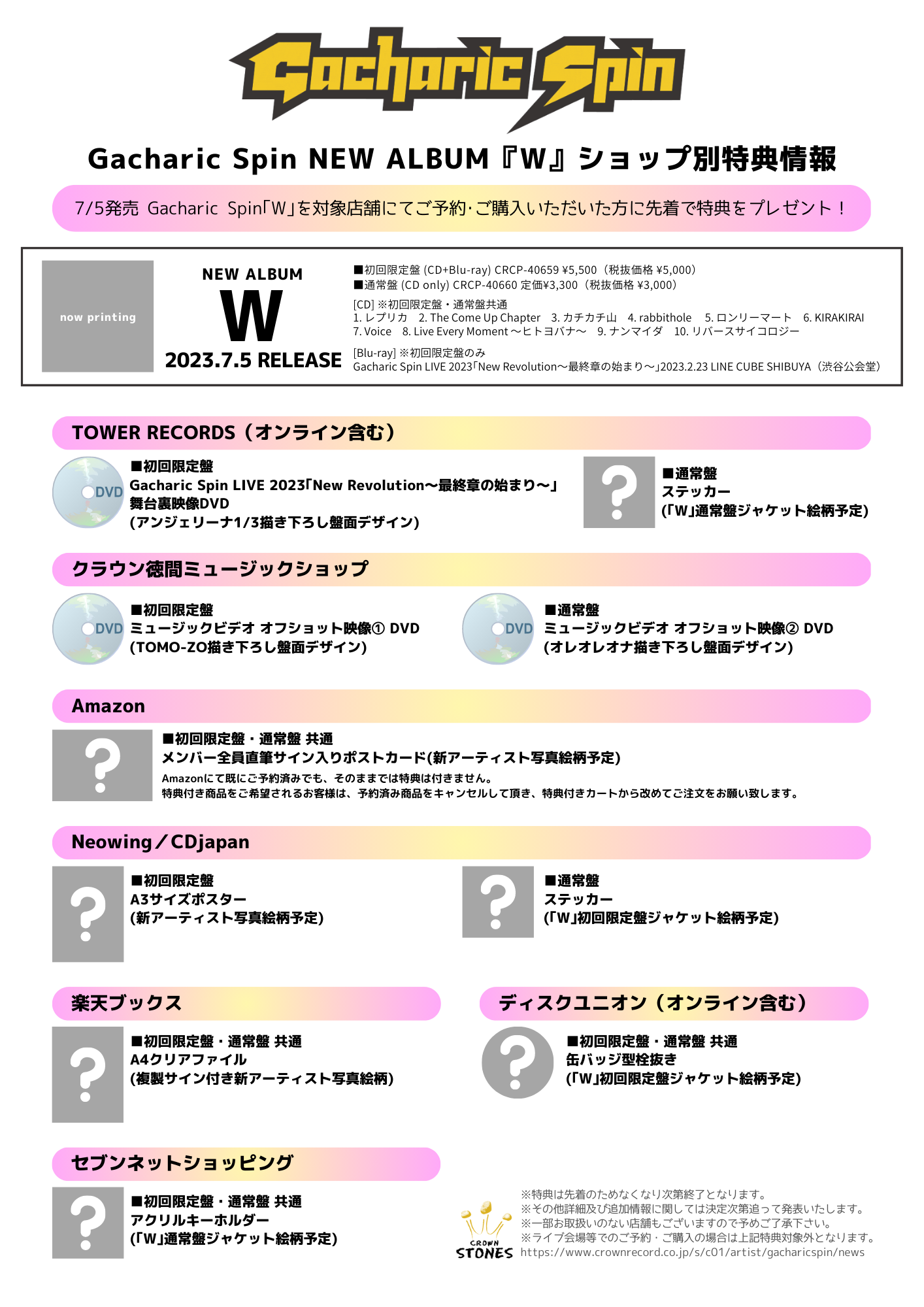 Gacharic Spin アルバム 「W」 CDショップ特典決定!!