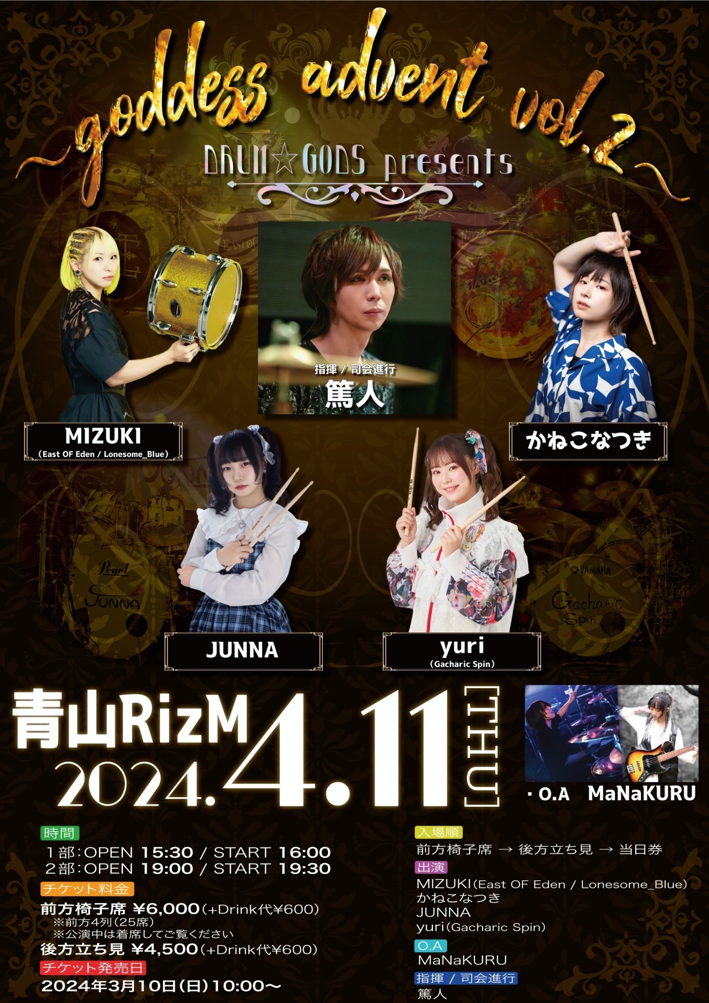出演:MIZUKI (East of Eden / Lonesome_Blue) / かねこなつき / JUNNA / yuri (Gacharic Spin)